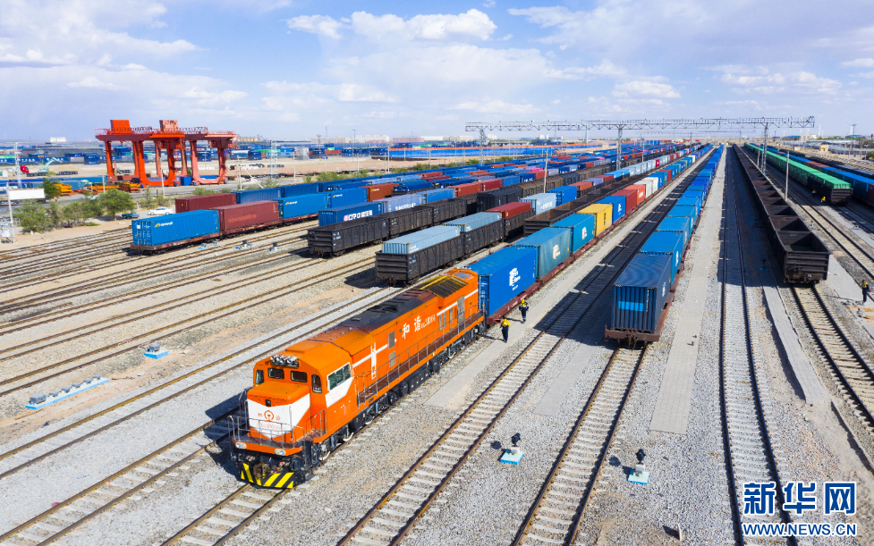一列出境中欧班列整装待发。新华网发(张海峰 摄)