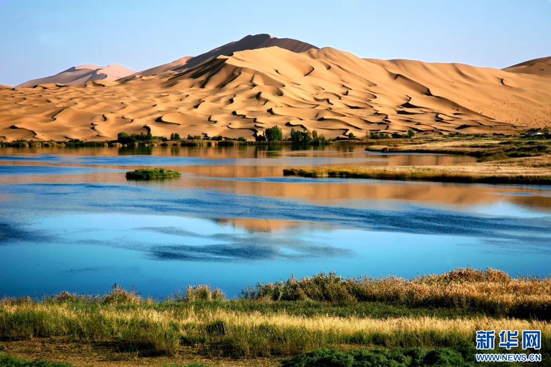 沙山倒映在湖水中