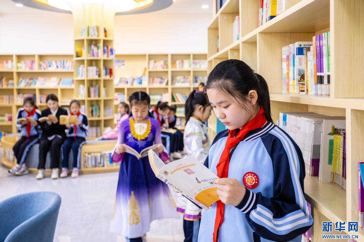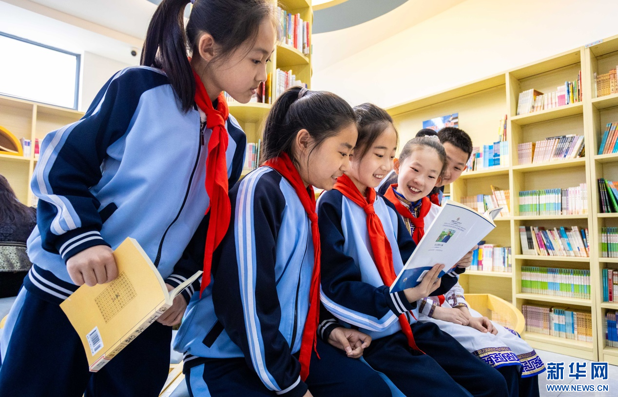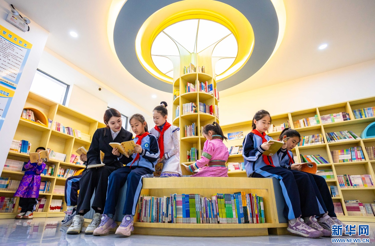 4月21日,呼和浩特市玉泉区南柴火市街小学学生在校园图书馆内阅读。新华网发(丁根厚 摄)