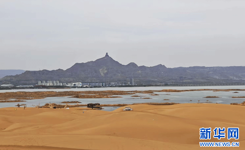 4月25日拍摄的乌海“一半碧水一半金沙”的独特风光。新华网 徐红梅 摄