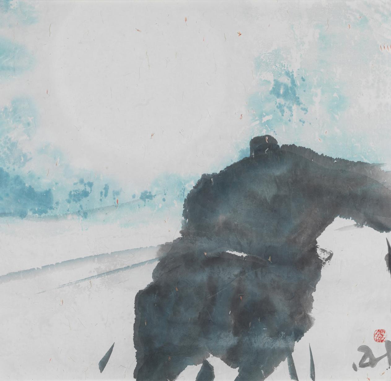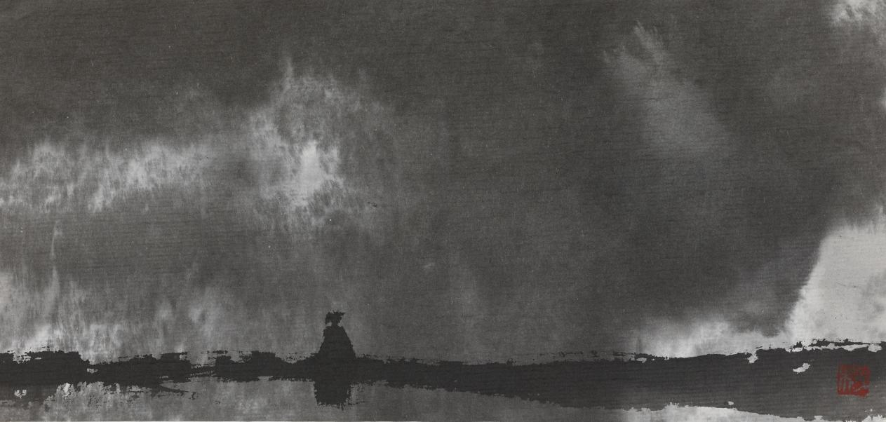 杨刚纸本水墨作品《雨中草原》,作于2010年。