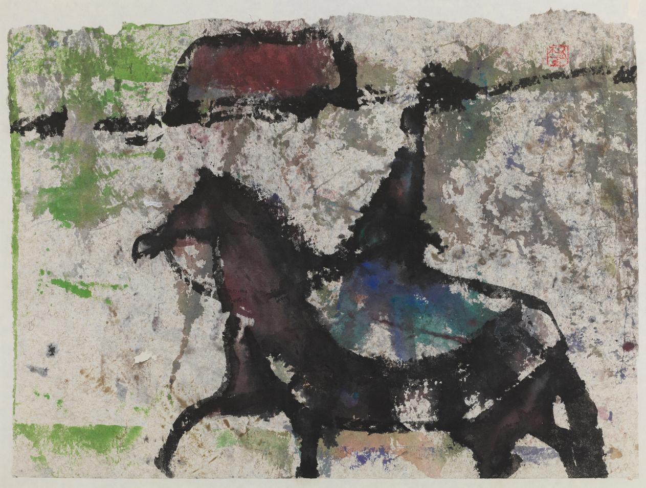 杨刚纸本彩墨作品《一骑独行》,作于2007年。