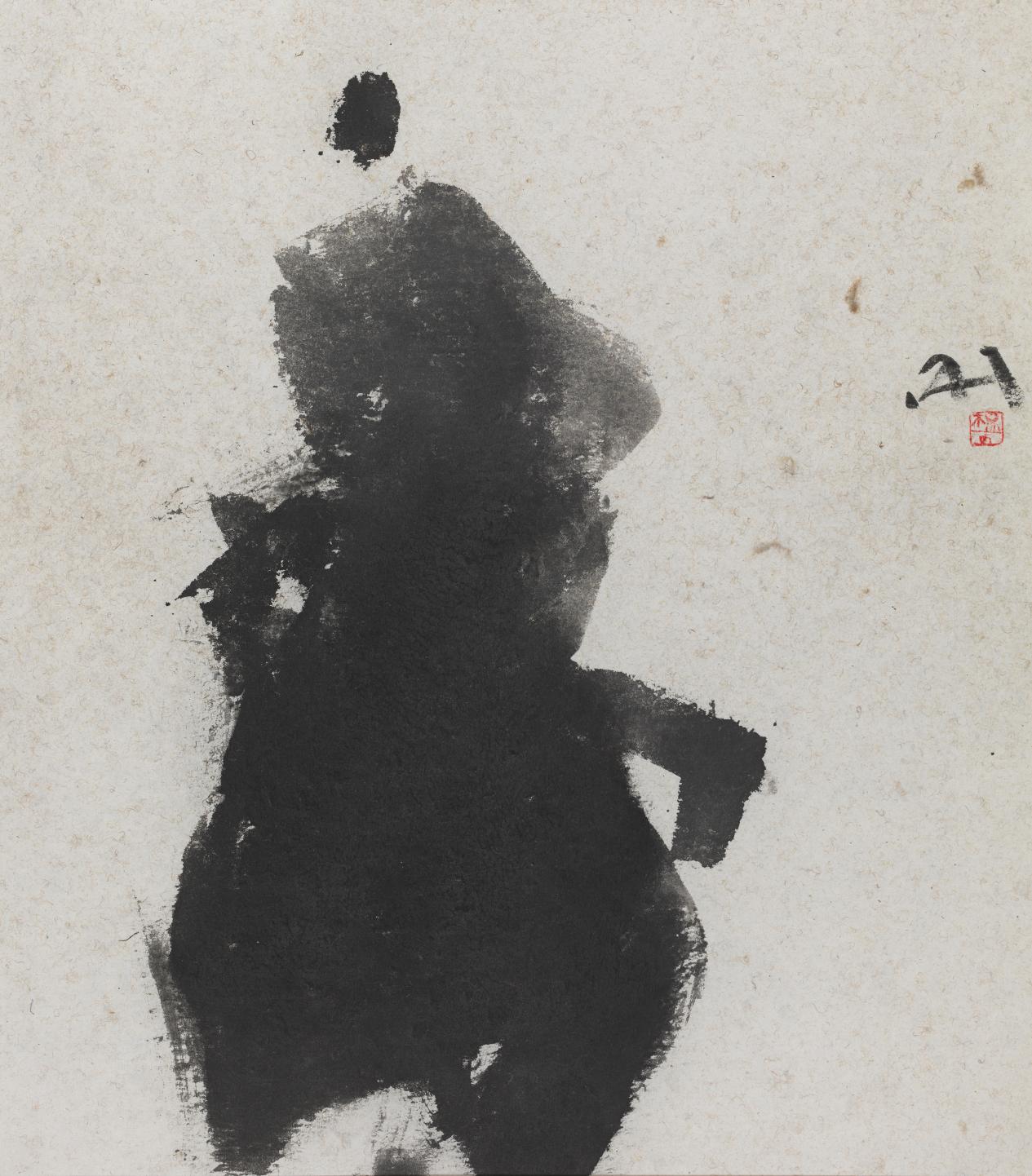 杨刚纸本水墨作品《上马图》,作于2017年。