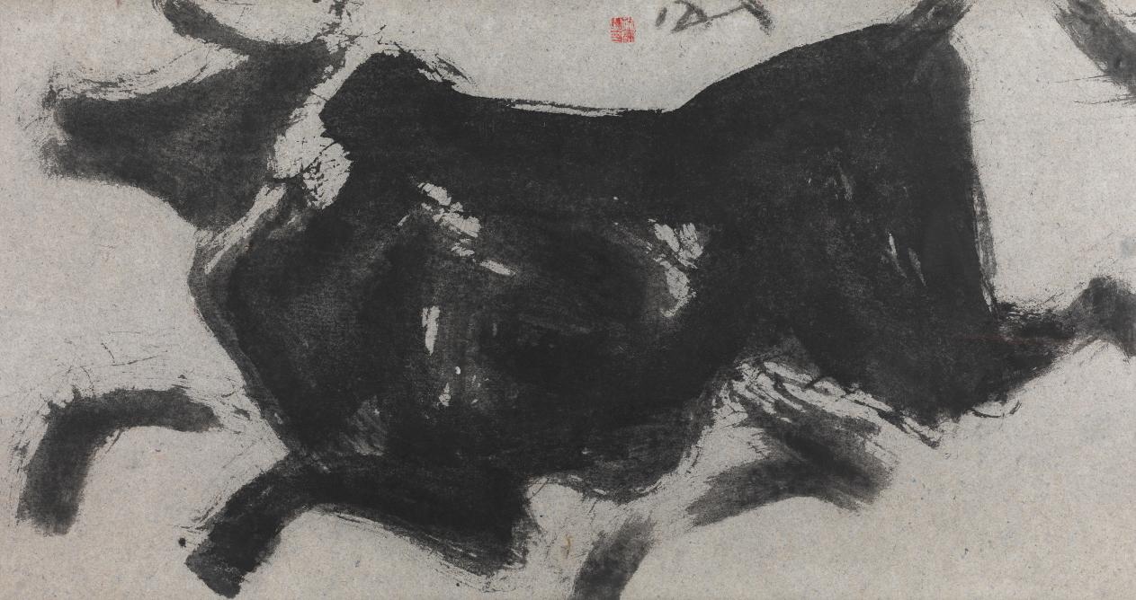 杨刚纸本水墨作品《牛气》,作于2008年。