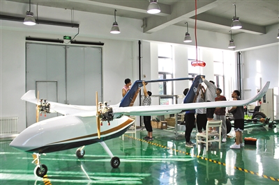 记者日前走进内蒙古工业大学智能装备研究院,无人机研发团队正进行长航时大载重固定翼无人机技术的研发工作。“我们研发的主要产品有TS300长航时大载重固定翼无人运输机、IT200全天候多功能巡检无人机。这两款机型完全由内蒙古工业大学智能装备研究院自主研发设计、生产制造。”内蒙古工业大学智能装备研究院负责人高云峰笑着说:“当前,内蒙古工业大学智能装备研究院与内蒙古能源集团以及内蒙古智慧运维新能源有限公司合作,重点推进大规模光伏电站巡检技术、风电机组混塔安全检测技术、智慧风机叶片内部巡检技术、风力机叶片智能车载模态分析监测技术等研发。”