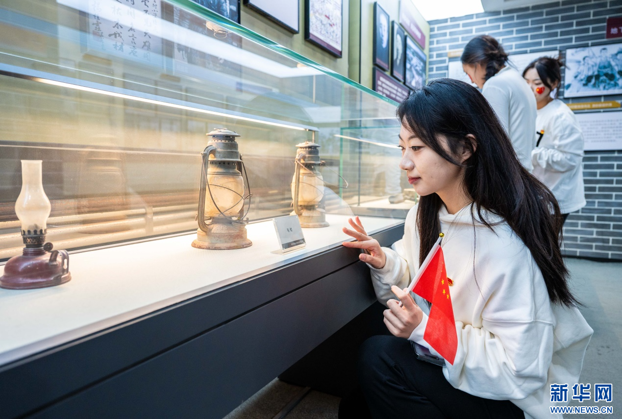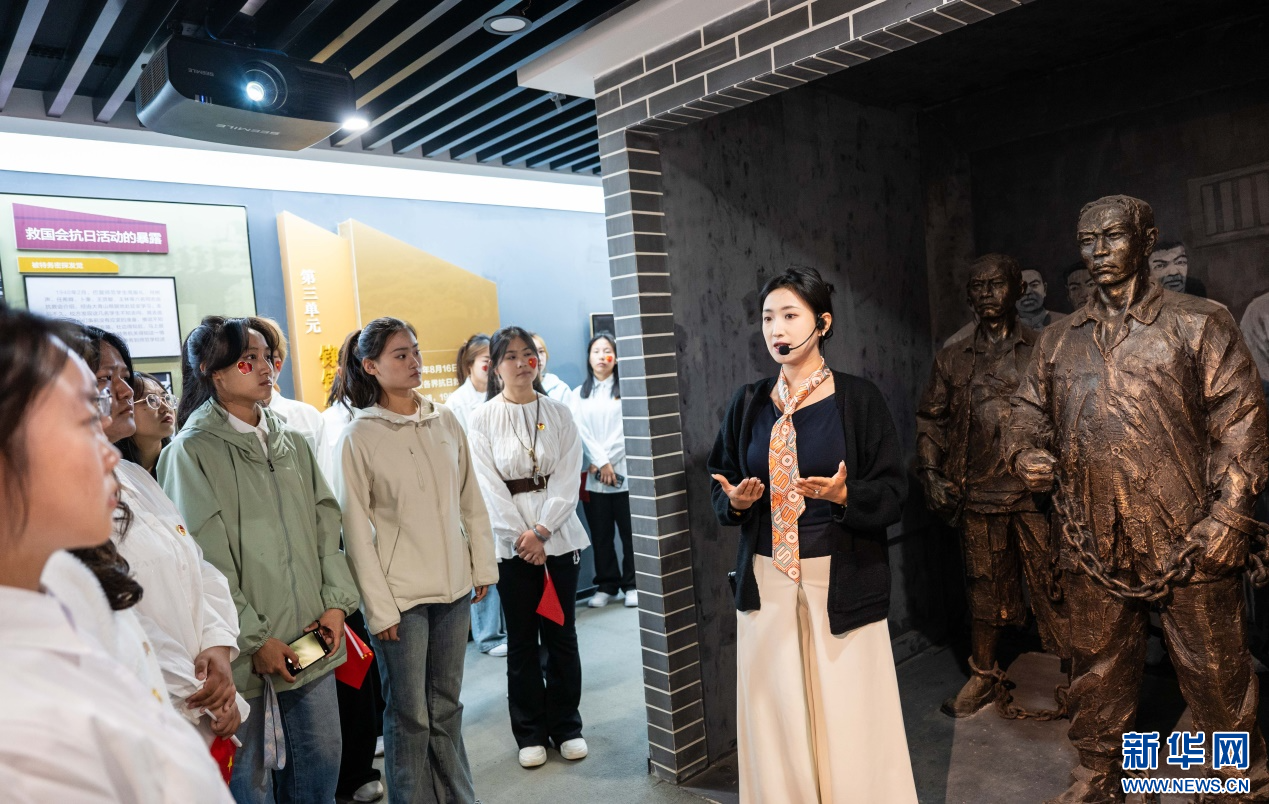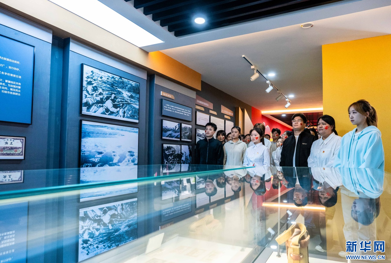 10月1日,内蒙古师范大学马克思主义学院的学子们在绥蒙各界抗日救国会旧址纪念馆参观研学。新华网发(丁根厚 摄)