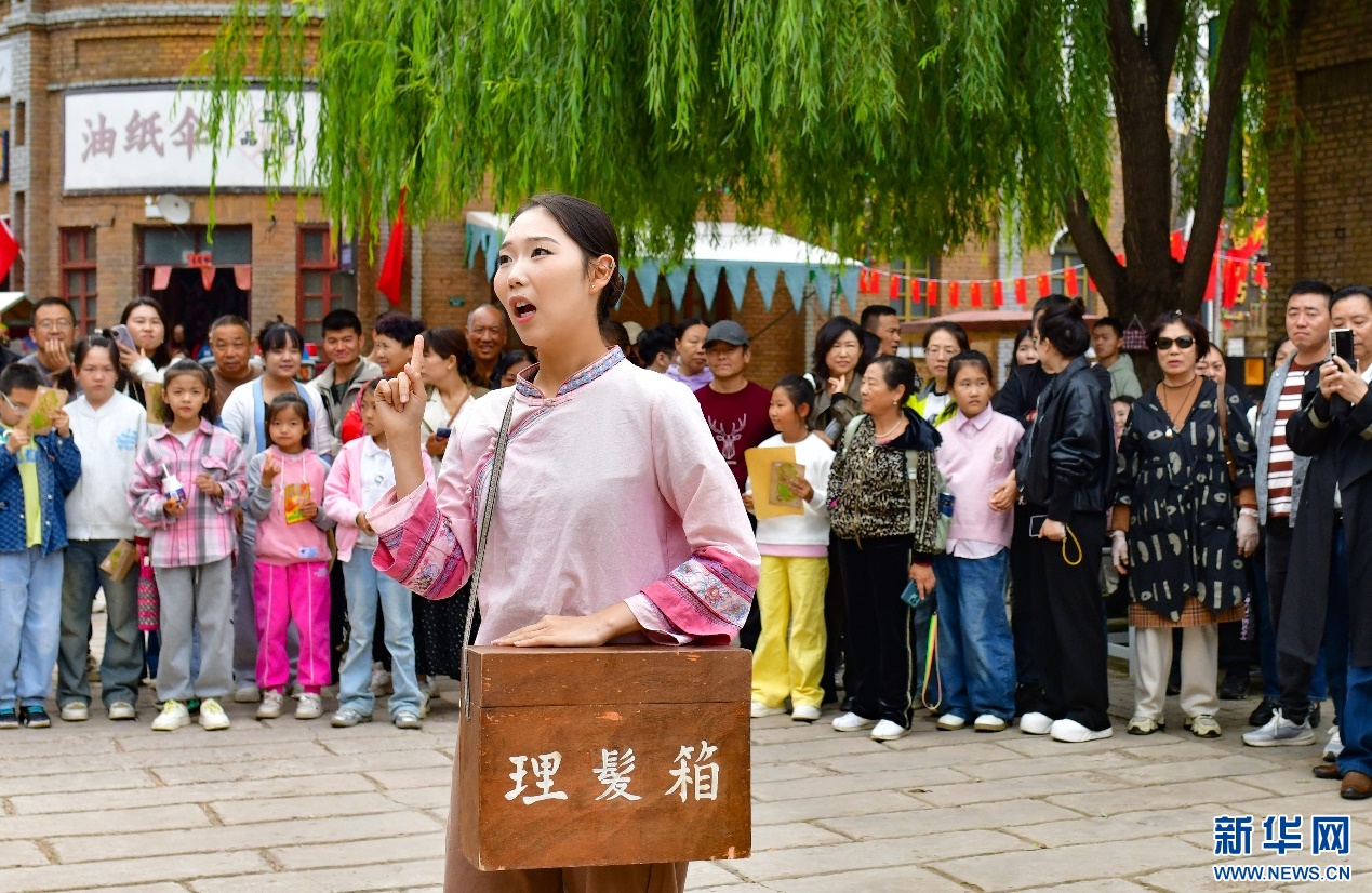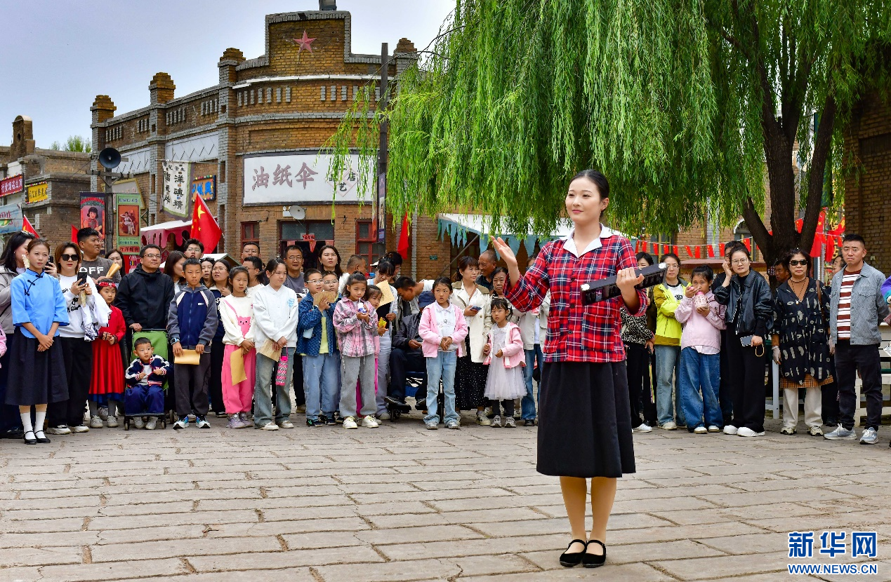 国庆中秋假期,内蒙古鄂尔多斯市伊金霍洛旗鄂尔多斯文化产业园依托园区内影视拍摄基地,推出沉浸式电影场景,讲述红色故事,展现不同历史时期的百姓生活场景,吸引众多游客前来观赏度假。