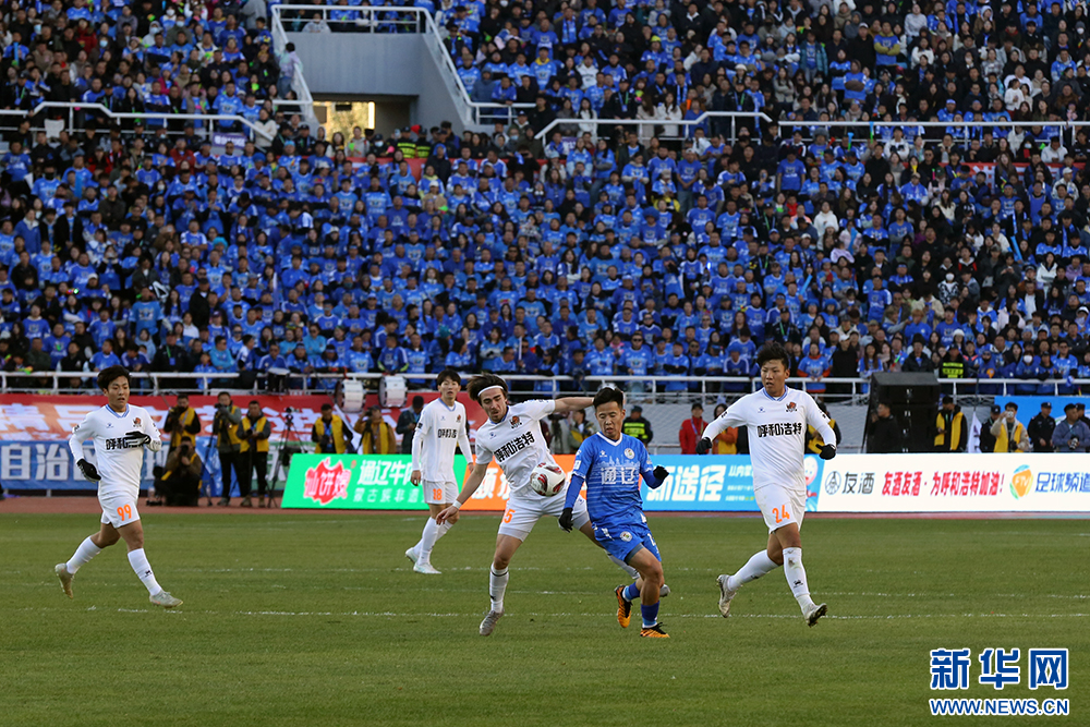 10月25日,呼和浩特队球员与通辽队球员在比赛中。新华网 石毅 摄