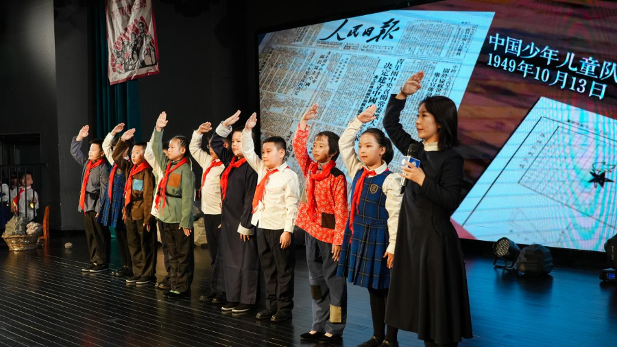 新队员眼神坚定、自信应答,闯过一关又一关,红色的种子在他们心田深深扎根。