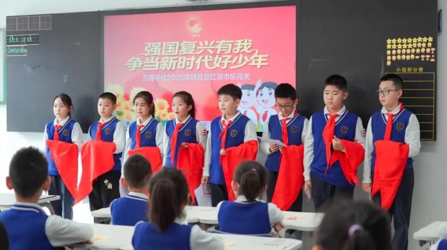 红领巾心向党,星星火炬代代传。为庆祝中国少年先锋队建队76周年,连日来,万锦学校积极响应号召,以“强国复兴有我,争当新时代好少年”为主题,通过开展“六知六会”入队知识闯关考核、“入队+研学”、主题升旗仪式等丰富多彩、形式多样的活动,引领广大少先队员争当爱党爱国、勤奋好学、全面发展的新时代好少年,为强国建设、民族复兴伟业时刻准备着。