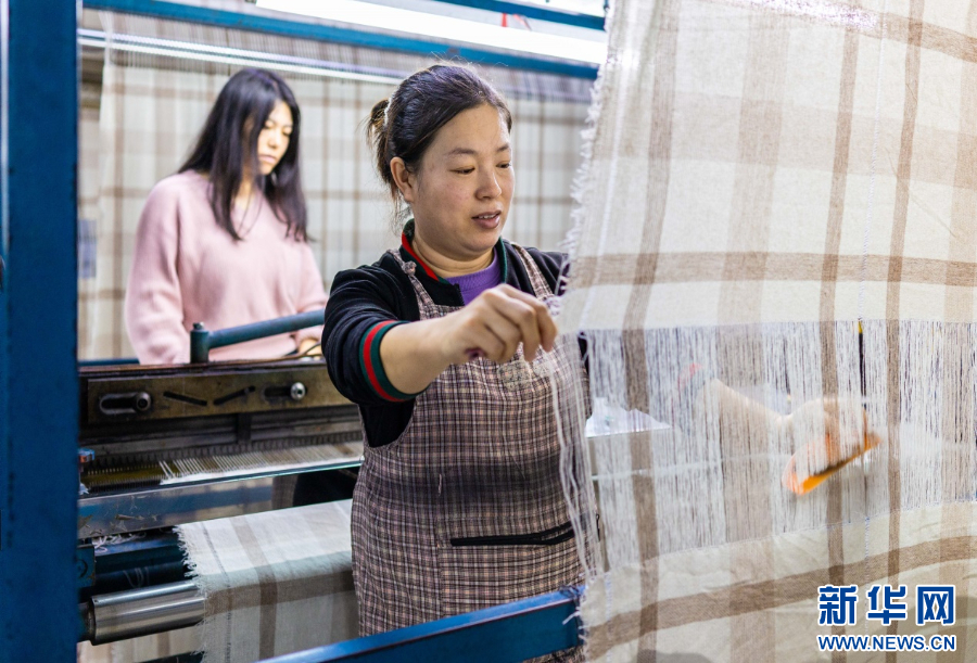 11月11日,内蒙古呼和浩特市玉泉区裕隆产业园精卓羊绒制品有限公司的生产车间内,工人在生产线上赶制羊绒制品订单。新华网发(丁根厚 摄)