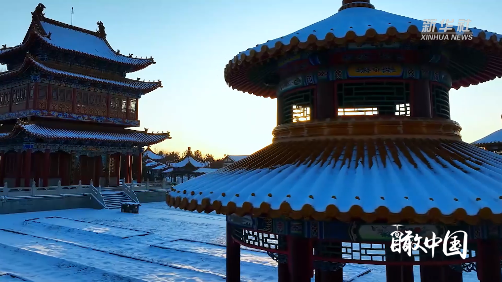 亭台楼阁静静伫立,飞檐缀满薄雪,远山含黛,近岭似眠,每一处景致都如淡墨轻点宣纸,缓缓晕染开来。