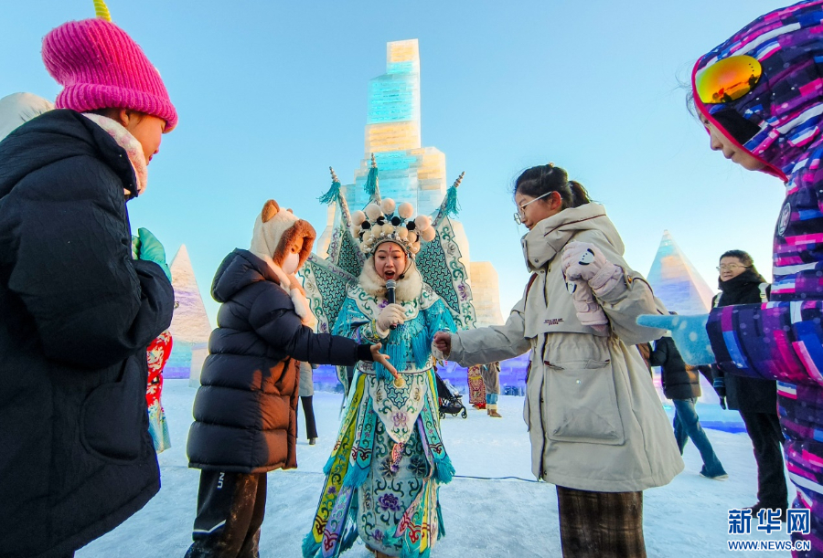 2025年12月31日,歌手在第五届呼和浩特欢乐冰雪节活动现场与游客互动。新华网发(丁根厚 摄)