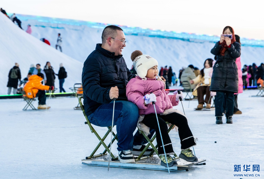 2025年12月31日,游客在第五届呼和浩特欢乐冰雪节园区体验冰雪项目。新华网发(丁根厚 摄)