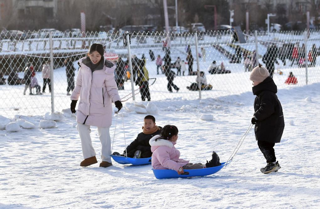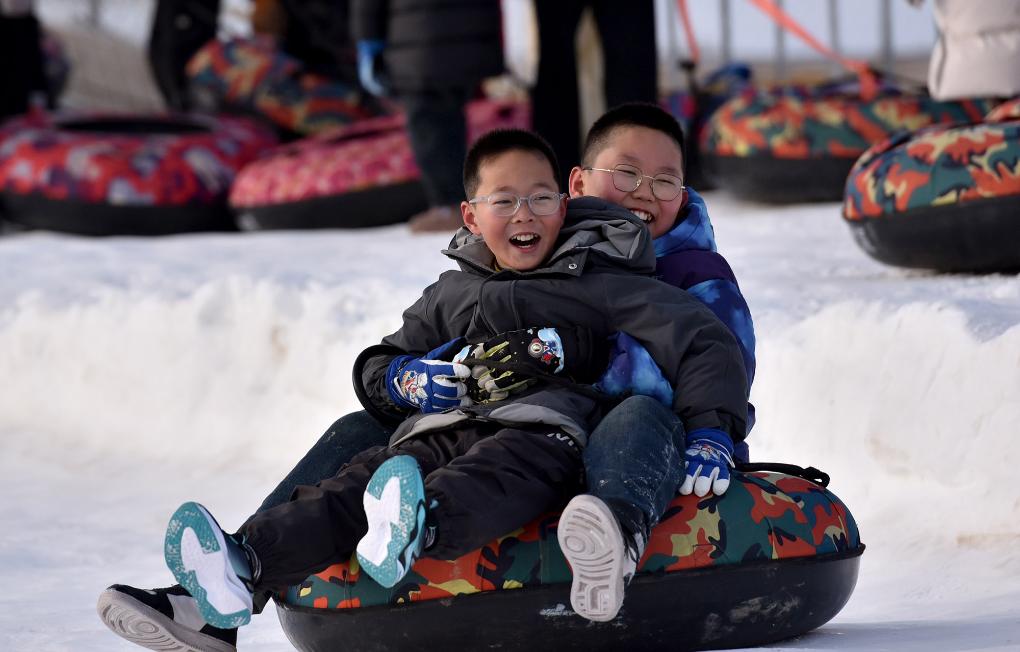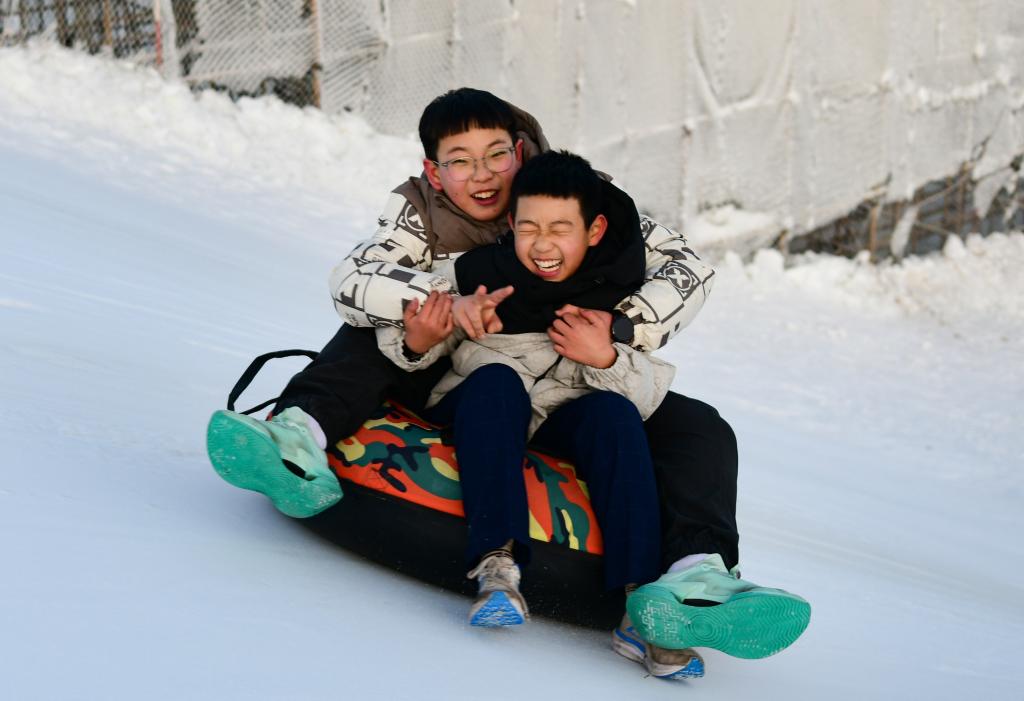 2025年12月31日,市民在冰雪主题乐园玩雪圈。(康文魁 摄)