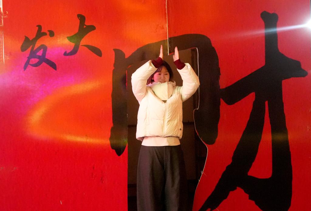 2025年12月31日,市民游客在美稷·长河里夜未央不夜城参与有奖游戏。(康文魁 摄)