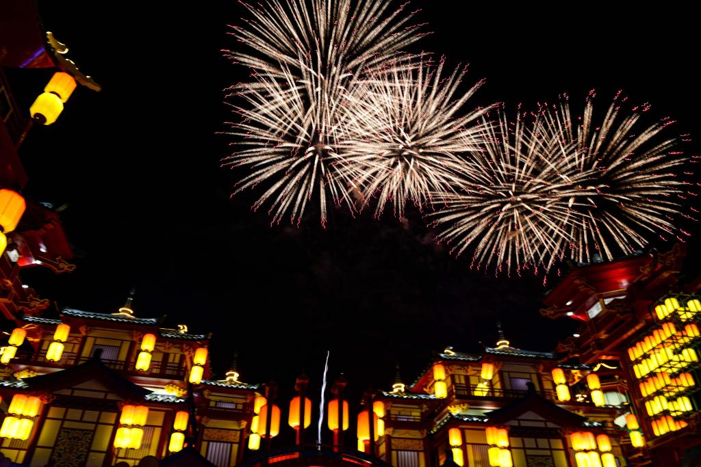 2025年12月31日,游客在美稷·长河里夜未央不夜城游玩。(吴潇莹 摄)