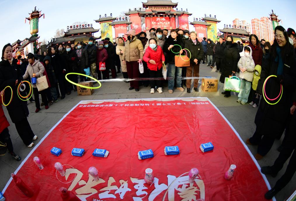 12月31日,市民游客在美稷·长河里夜未央不夜城参与有奖游戏。(康文魁 摄)