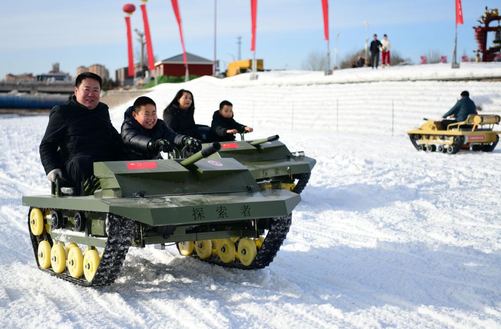 2025年12月31日,市民游客在冰雪主题乐园体验雪地坦克。(康文魁 摄)