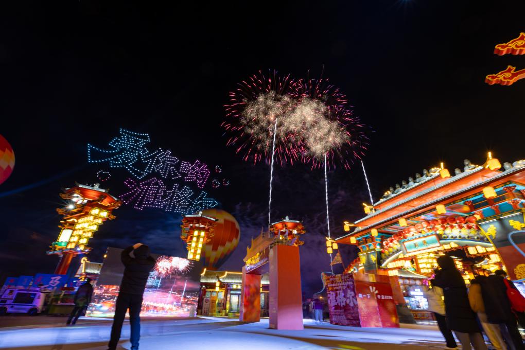2025年12月31日拍摄的准格尔旗冰雪跨年夜活动现场(无人机照片)。 (李峰 摄)