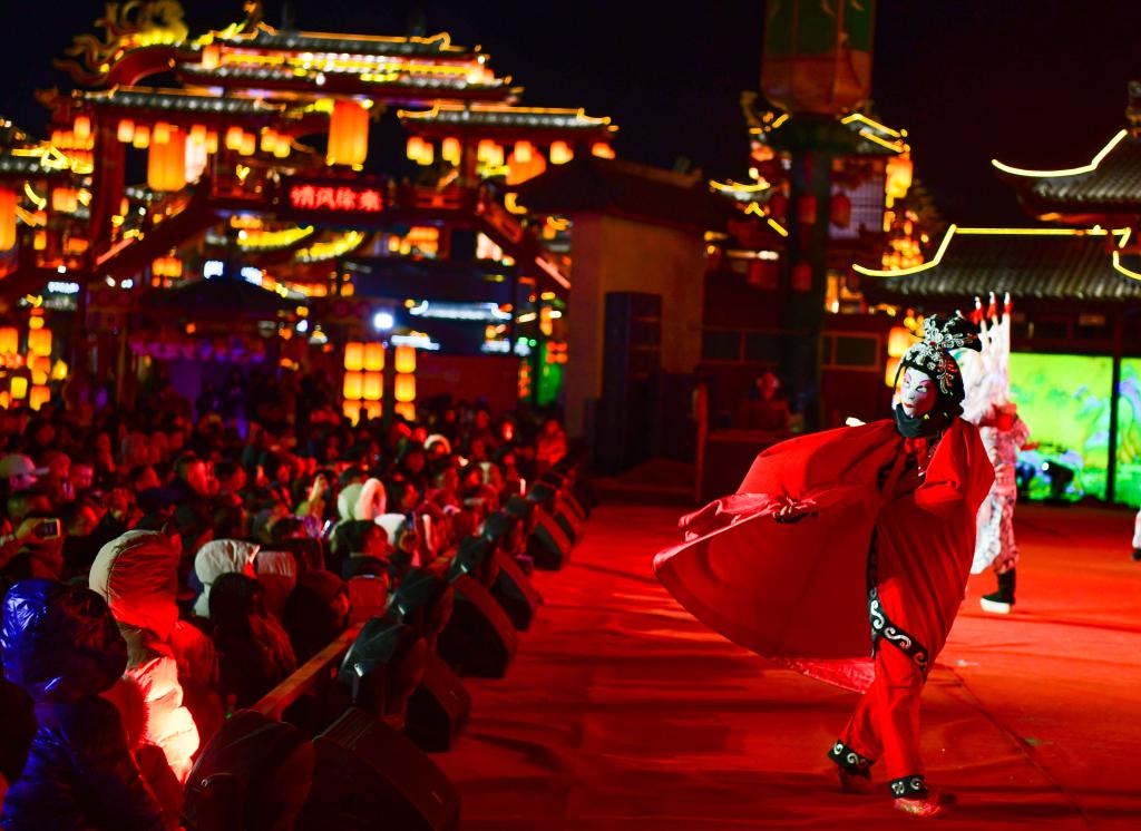 2025年12月31日,演员在美稷·长河里夜未央不夜城表演实景剧《印象·准格尔》。(康文魁 摄)