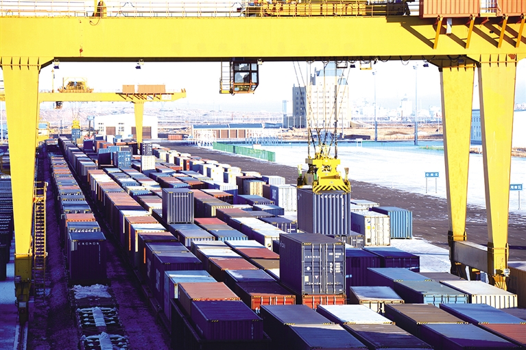 繁忙的满洲里口岸。