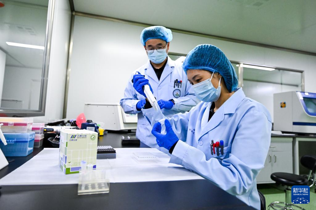 1月7日,锡林郭勒盟公安局刑侦支队刑事技术大队的许锐佳(左)、孙志敏在锡林郭勒盟公安局实验室进行血样检测。新华社记者 李志鹏 摄