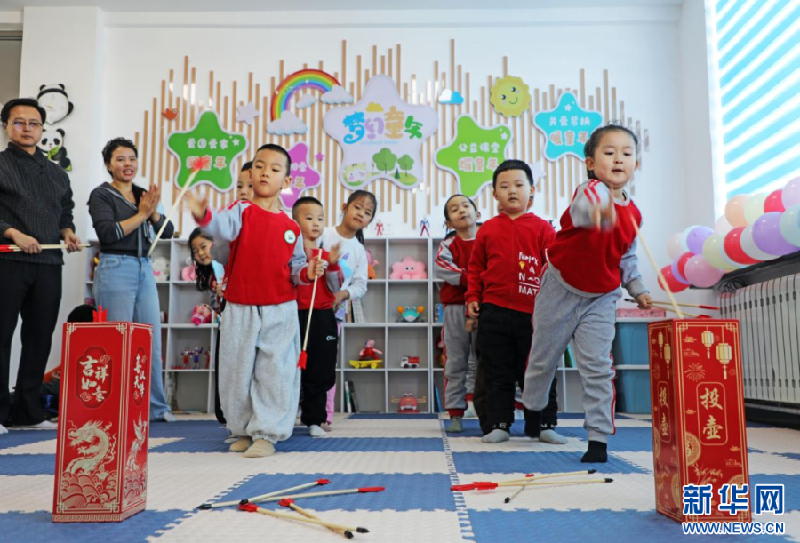 1月9日,在内蒙古自治区扎兰屯市繁荣办事处新风社区阳光农场,小朋友们进行投壶趣味比赛。新华网发(韩颖群 摄)