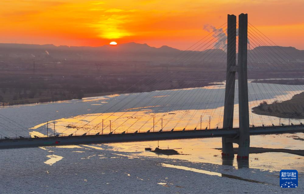 连日来,受低温寒潮天气影响,位于宁夏石嘴山市与内蒙古乌海市交界处的黄河出现冰封河段,万千流凌汇集在一起,宛如一条银色巨龙,构成一幅冬日画卷。