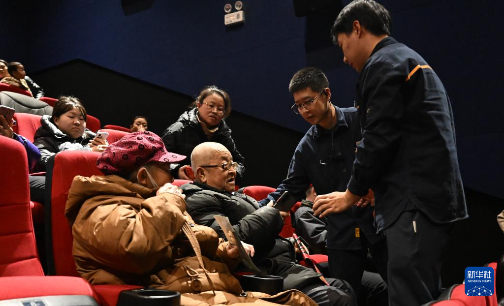 1月27日,“光影织暖 情漫心途——内蒙古视障人士公益放映行”活动在呼和浩特市回民区万达影城举行。残障朋友在工作人员引导下入座,欣赏无障碍电影《天降大任》与《看不见的顶峰》。影片画面配合生动口述,让视障人士也能感受电影艺术的魅力。