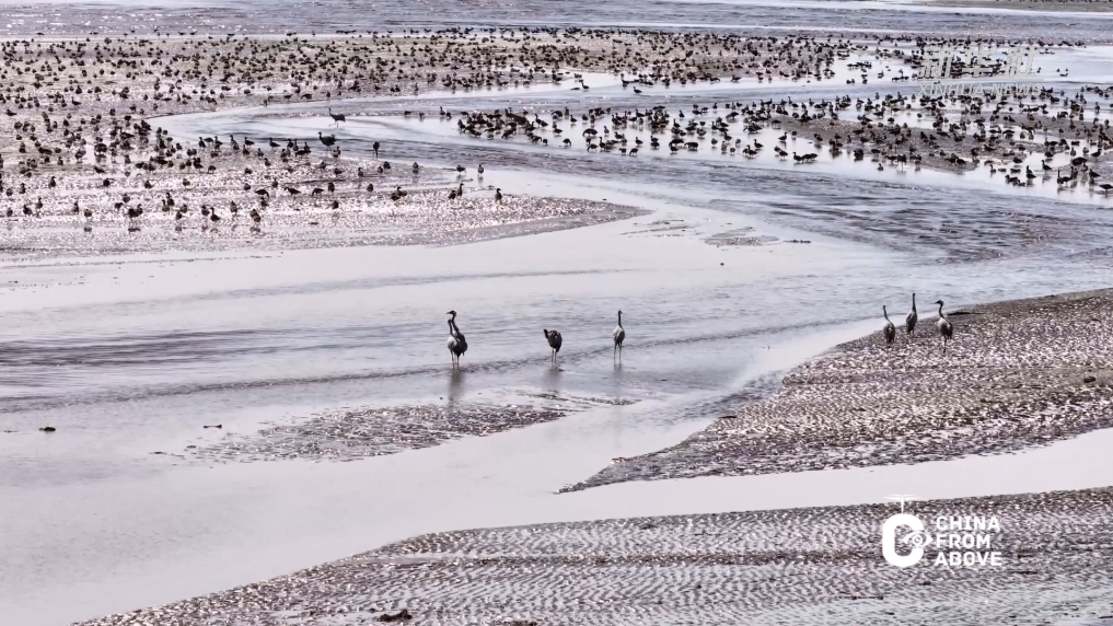 万鸟振翅划破长空,成群的候鸟如约而至,在水天之间盘旋起舞,为这片土地奏响春天的序曲。