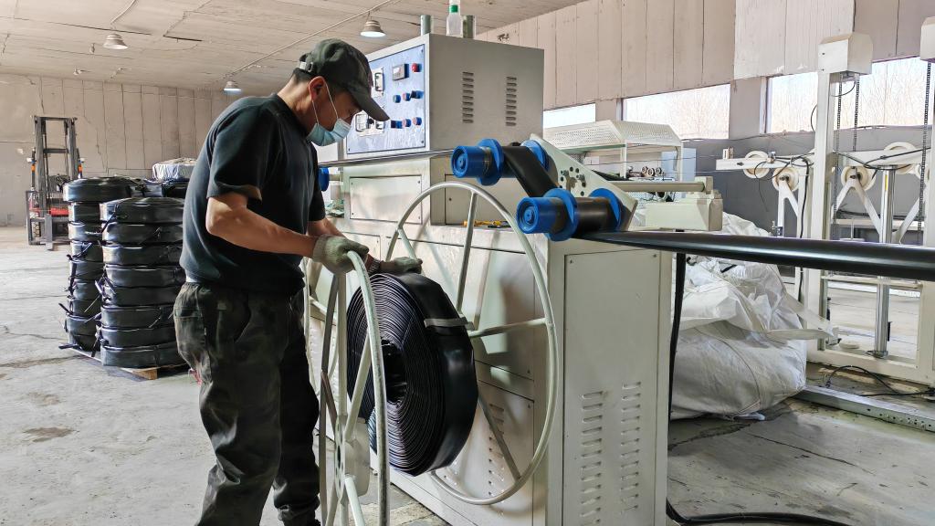 物资保障是春耕生产的“硬支撑”。当前,主管、支管、毛管等灌溉物资正集中配送,确保春播前全部到位。旗内润泽塑料制品有限公司、双生滴灌带厂两家本土企业开足产能,实现滴灌带本地化、定制化生产供应,既能缩短运输距离、降低采购成本,又能精准适配不同作物需求,从源头保障灌溉系统稳定运行。“我们厂在满负荷生产情况下,依旧能保质保量,按照0.185毫米至0.2毫米标准,保证农户不出现沙眼,不出现爆管,能满足全年的供水量。”莫旗双生滴灌带厂董事长郭旭彬说。