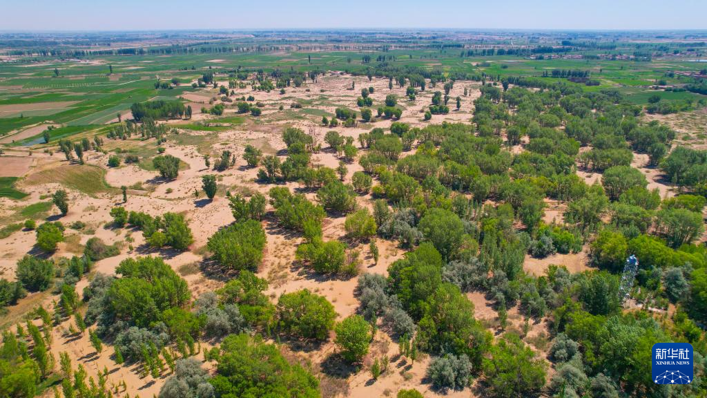 这是6月14日拍摄的巴彦淖尔市临河区国营新华林场(无人机照片)。