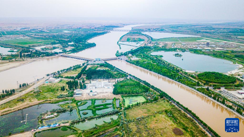这是6月18日拍摄的巴彦淖尔市磴口县三盛公水利枢纽(无人机照片)。