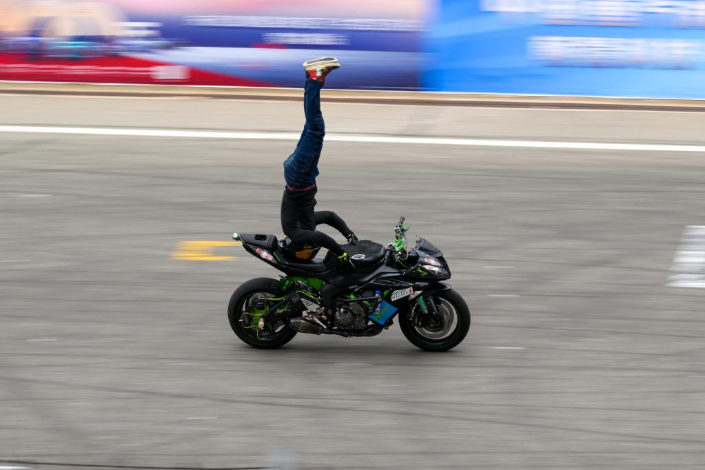 6月27日,车手驾驶摩托车在鄂尔多斯国际赛车场进行表演。