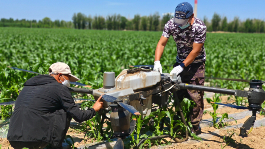 近日,内蒙古自治区乌兰察布市丰镇市巨宝庄镇7号村种植户对玉米地进行病虫害防治作业,通过科技手段助力田间管理,促进农业提质增效。