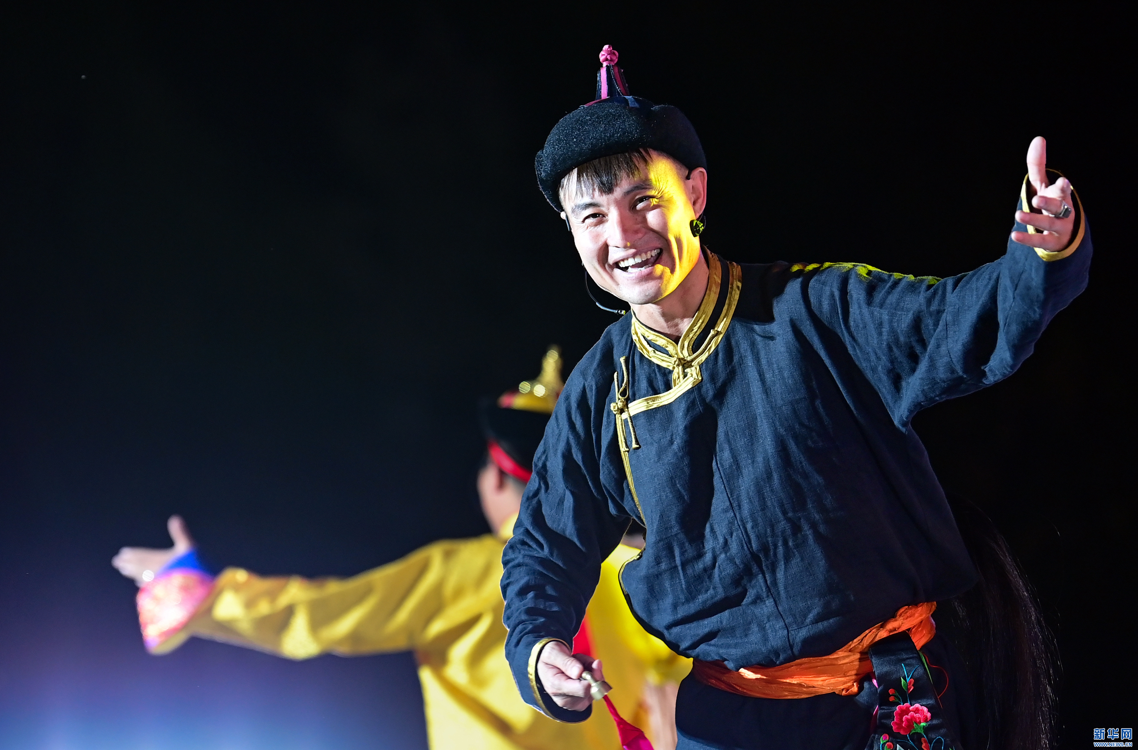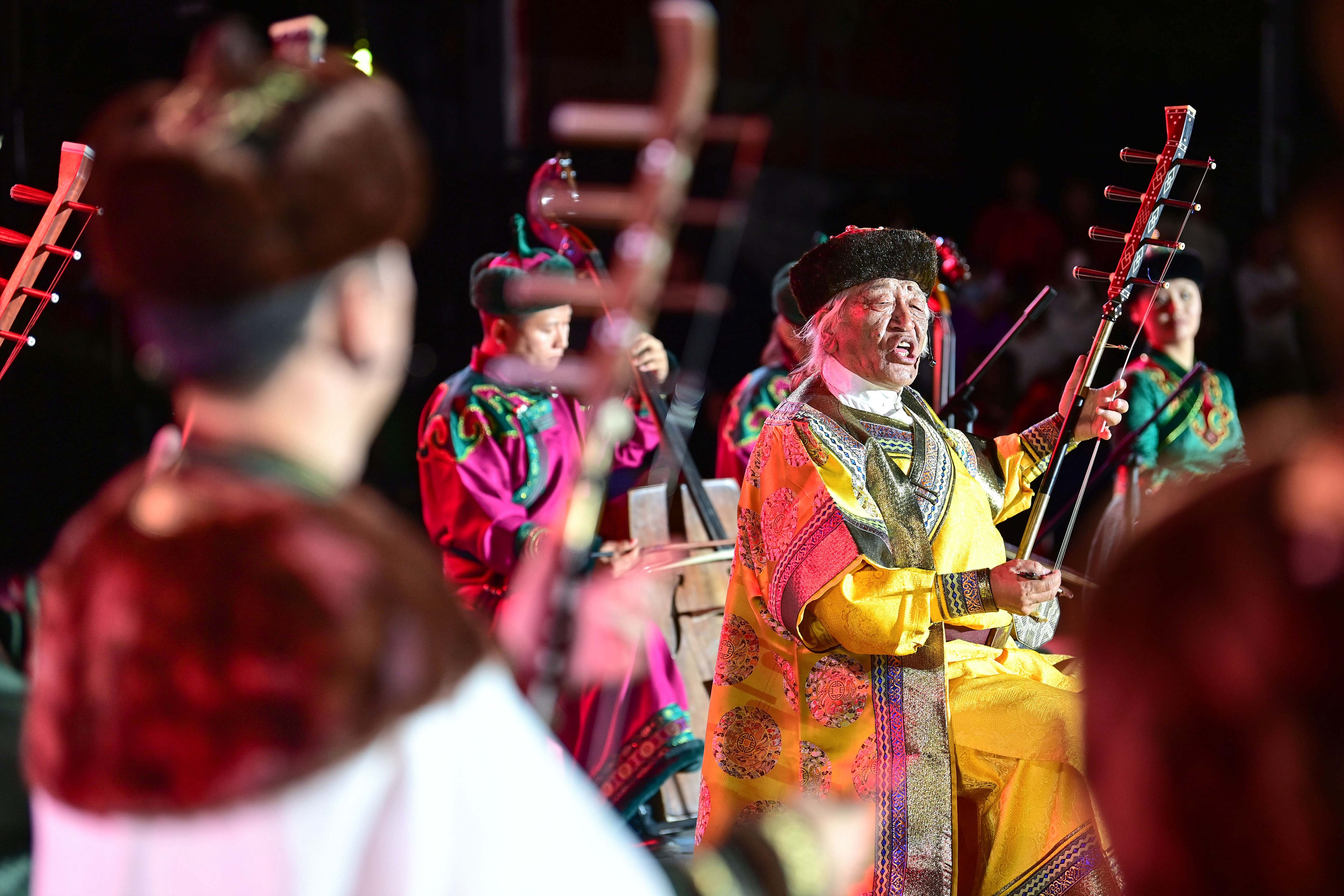 7月1日,演员在展演开幕式上表演呼麦《巴林马驹》。新华网发(王正摄)