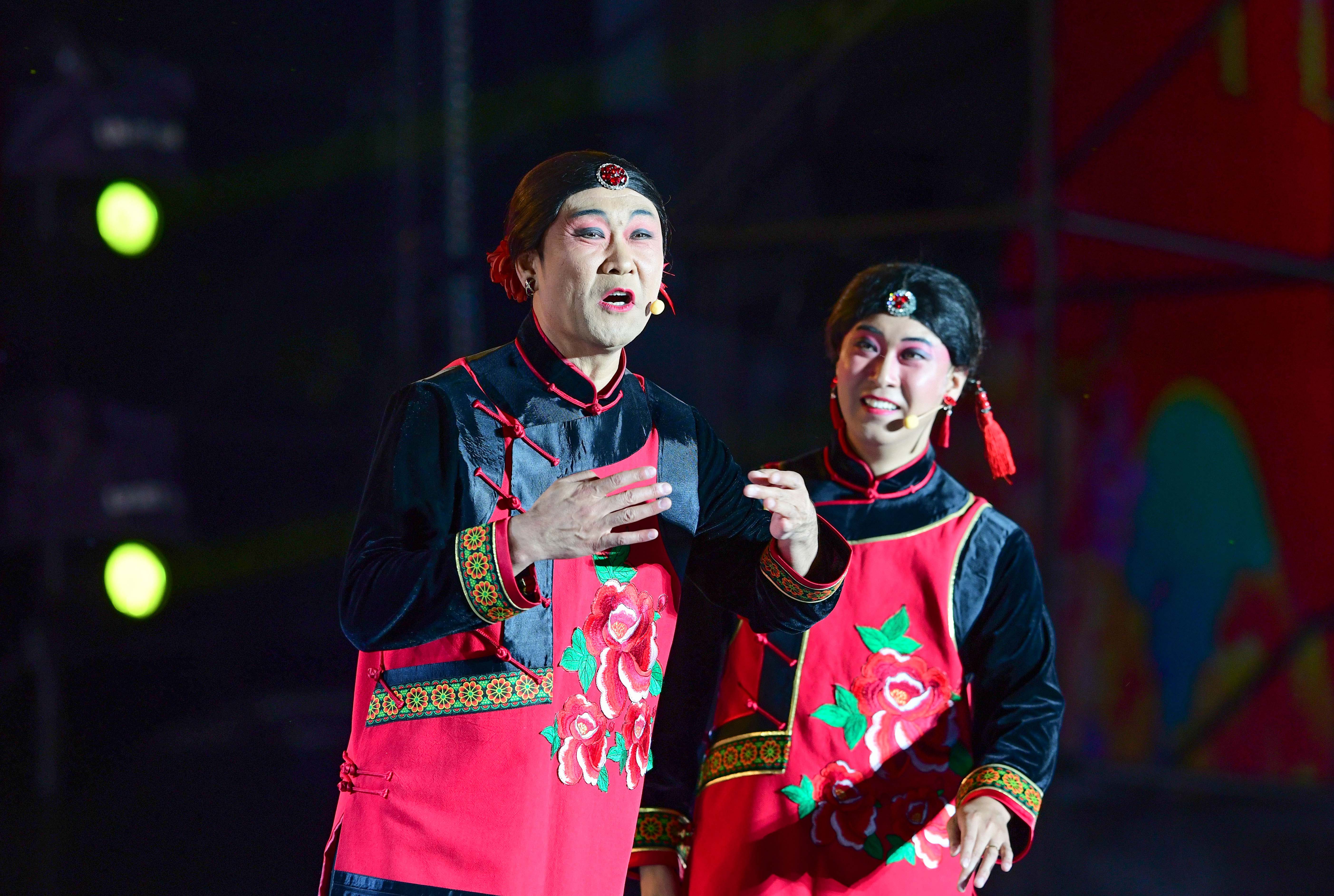 7月1日,演员在展演开幕式上表演群口好来宝《绿水青山罕山颂》。新华网发(王正摄)