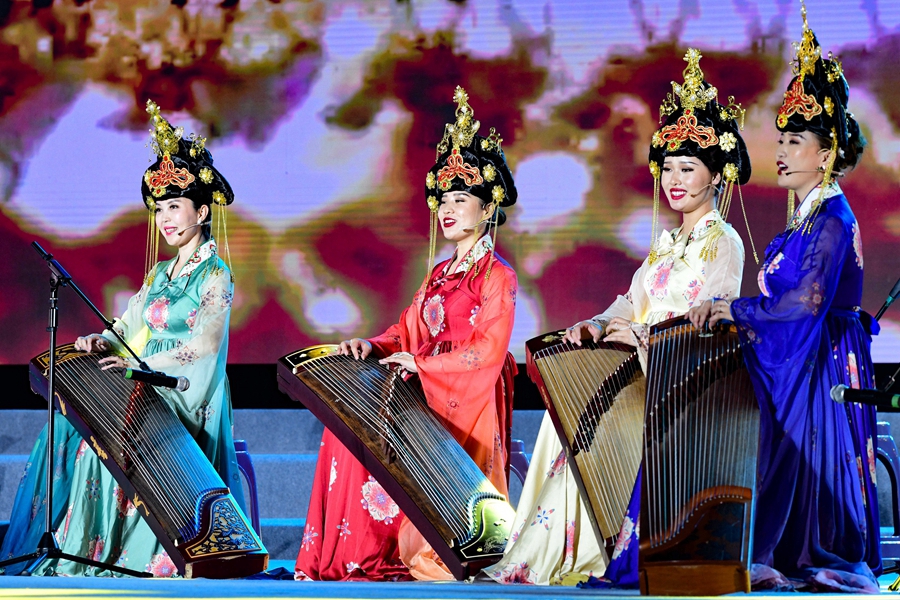7月1日,演员在展演开幕式上表演赞词弹唱《丝路之歌》。新华网发(王正摄)