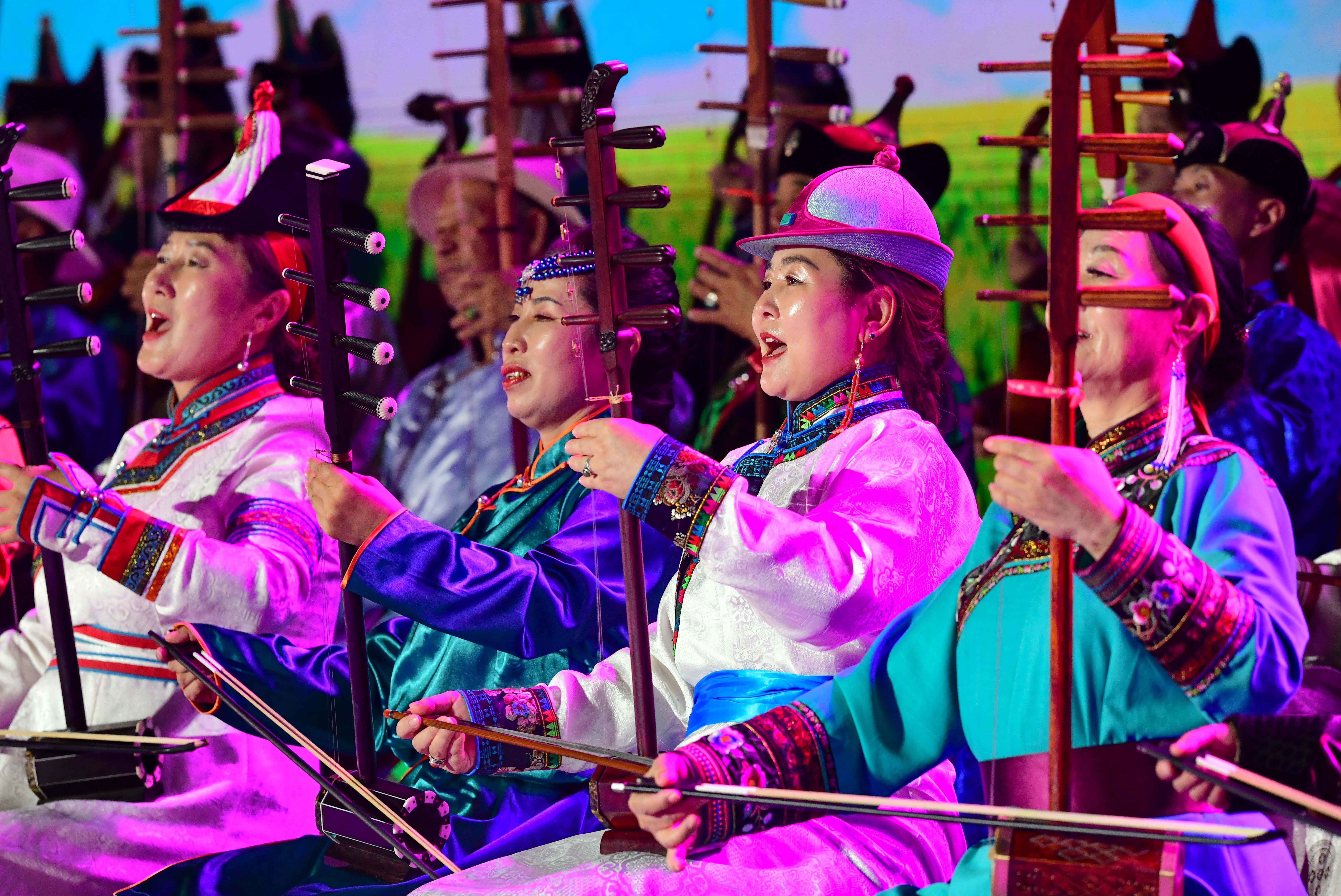 7月1日,演员在展演开幕式上表演岱日查《说说中国式现代化》。新华网发(王正摄)