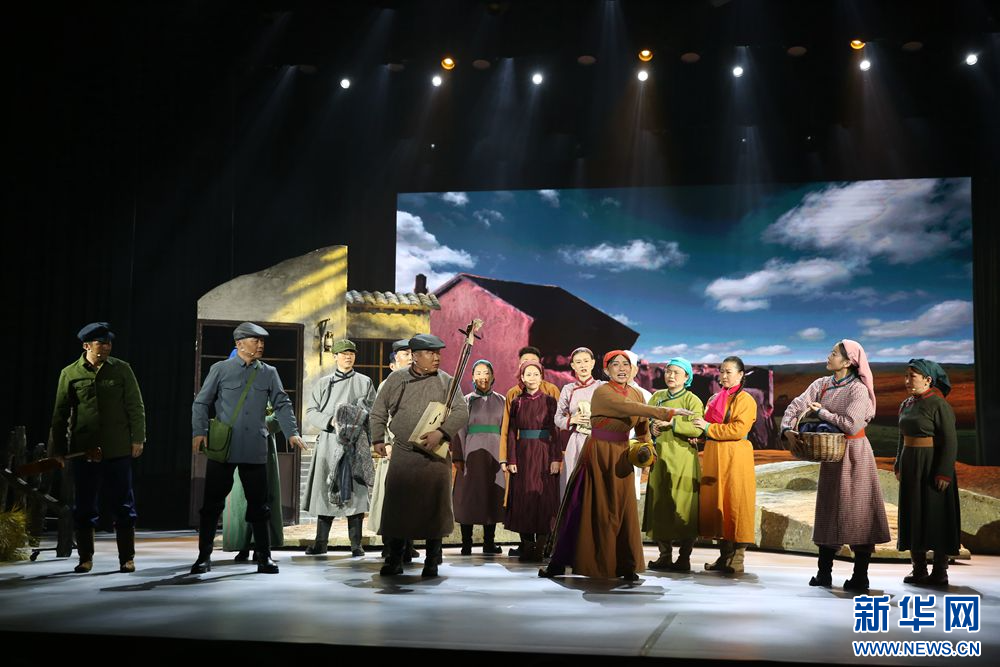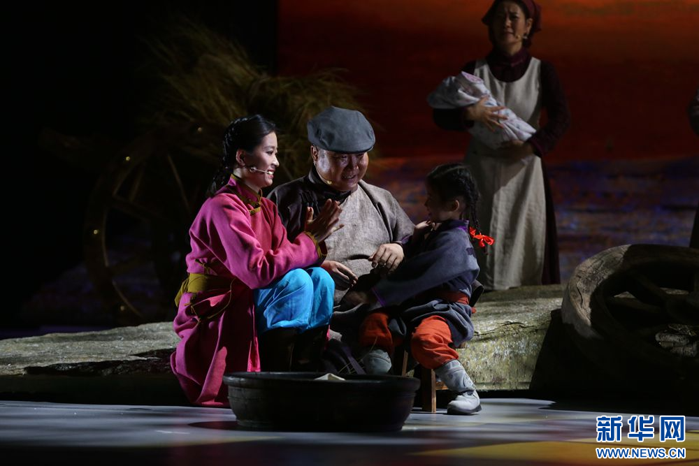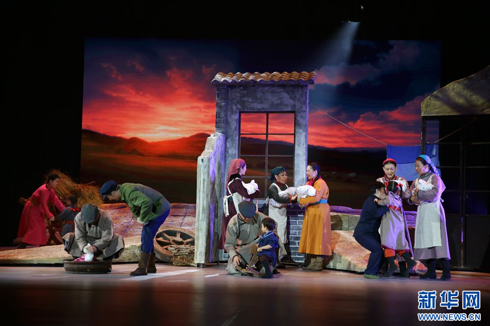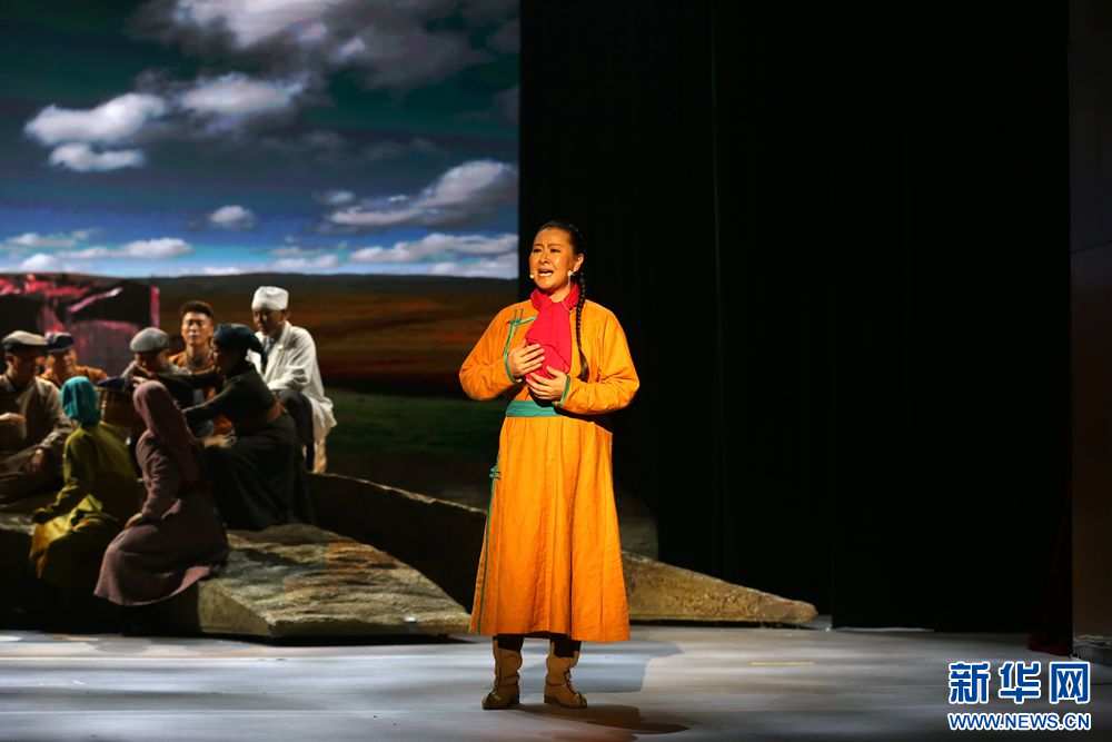 这是7月7日拍摄的音乐剧《人民楷模都贵玛》演出现场。新华网石毅摄