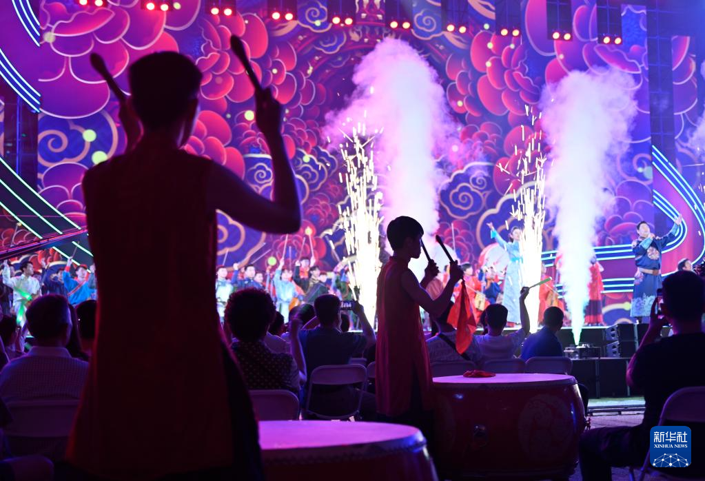 图为第二十届中国·内蒙古草原文化节开幕式现场大鼓表演。新华社记者贺书琛 摄