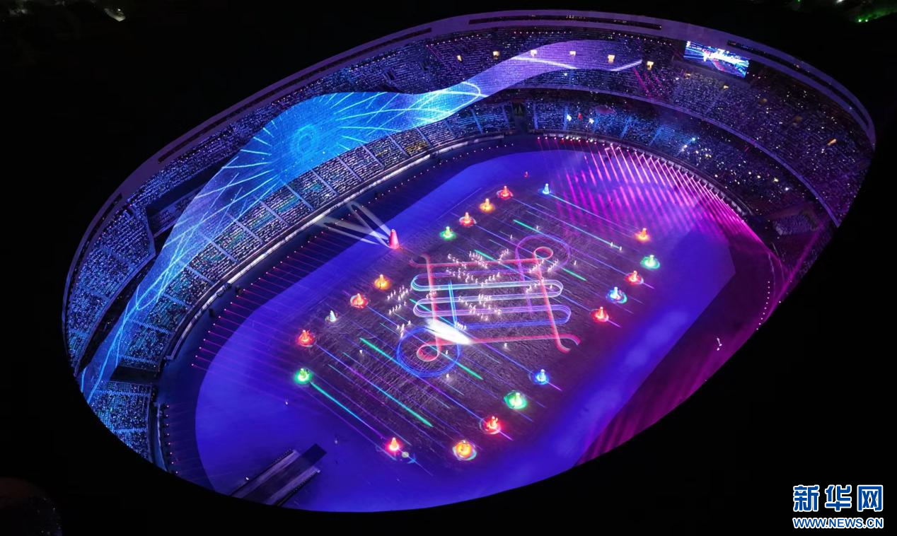 开幕式现场的声光表演。新华网发(李峰摄)