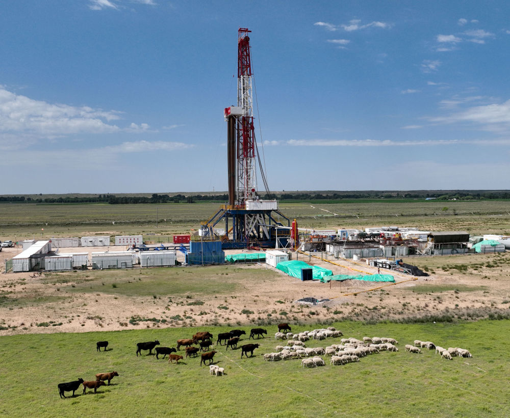 ↑2023年7月24日,在长庆油田苏里格气田一处钻井平台旁,牛羊悠闲地吃着草(无人机照片)。中国石油长庆油田苏里格气田是保障京津地区、内蒙古周边区域的主力气源地。它处于内蒙古鄂尔多斯乌审旗,毛乌素沙地腹地,这里生态环境脆弱,植物成活率低。近年来,苏里格气田积极探索沙漠、戈壁环境下科学有效的环境保护开发模式,创新技术工艺、从源头入手减少污染,在生产清洁能源的同时,实现了“开发一片、保护一片、绿化一片”,走出了一条能源开发的绿色之路,打造出沙漠戈壁里的“绿色气田”。