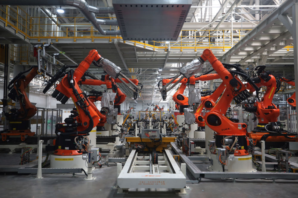 ↑2023年5月29日在合肥拍摄的大众安徽模块化电驱动平台工厂车身车间一角。