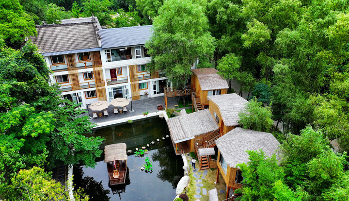 ↑2023年7月24日,陕西省汉中市留坝县紫柏街道大滩村云山阅民宿(无人机照片)。位于秦岭南麓腹地的陕西省汉中市留坝县凭借怡人的自然环境,吸引不少游客前来避暑休闲。