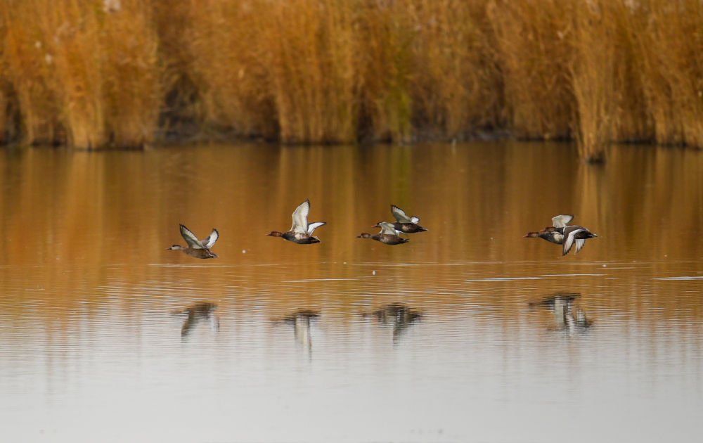↑2020年10月28日,候鸟在地处内蒙古巴彦淖尔市乌拉特前旗境内的乌梁素海飞翔。近年来,通过生态补水,乌梁素海水域面积扩大,水体水质改善。为保护鸟类迁徙,内蒙古还在乌梁素海湿地划定了鸟类筑巢、产卵核心区,禁止人类活动干扰,并采取专人巡护、定期监测等措施监护鸟类栖息、繁殖情况。