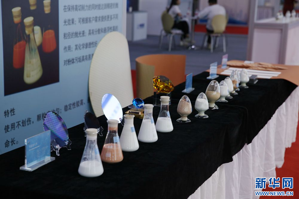 8月16日,2023全国稀土新材料及应用展览会的稀土资源和新材料展区现场。新华网石毅摄