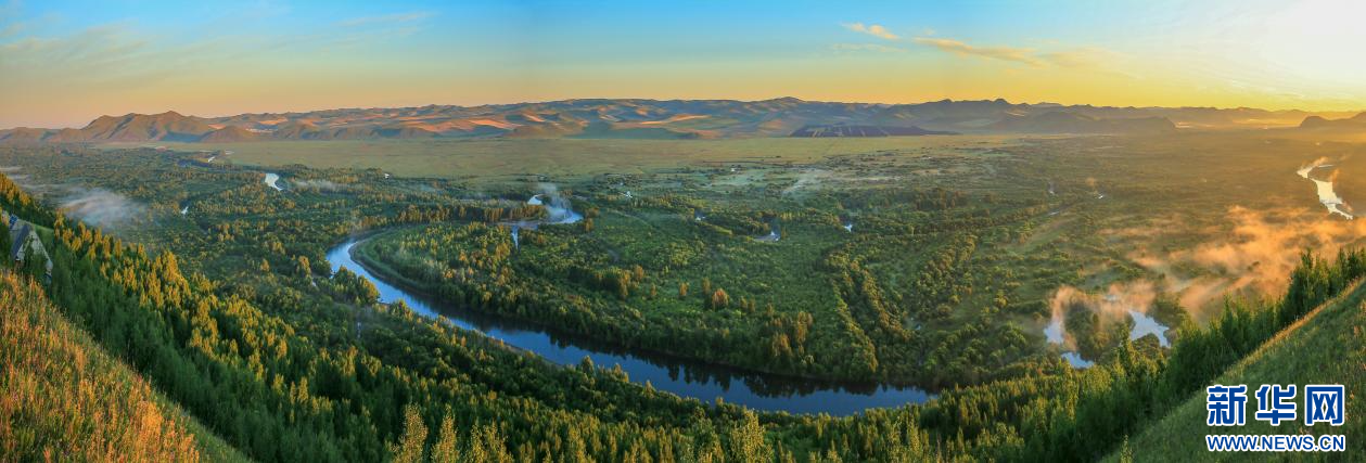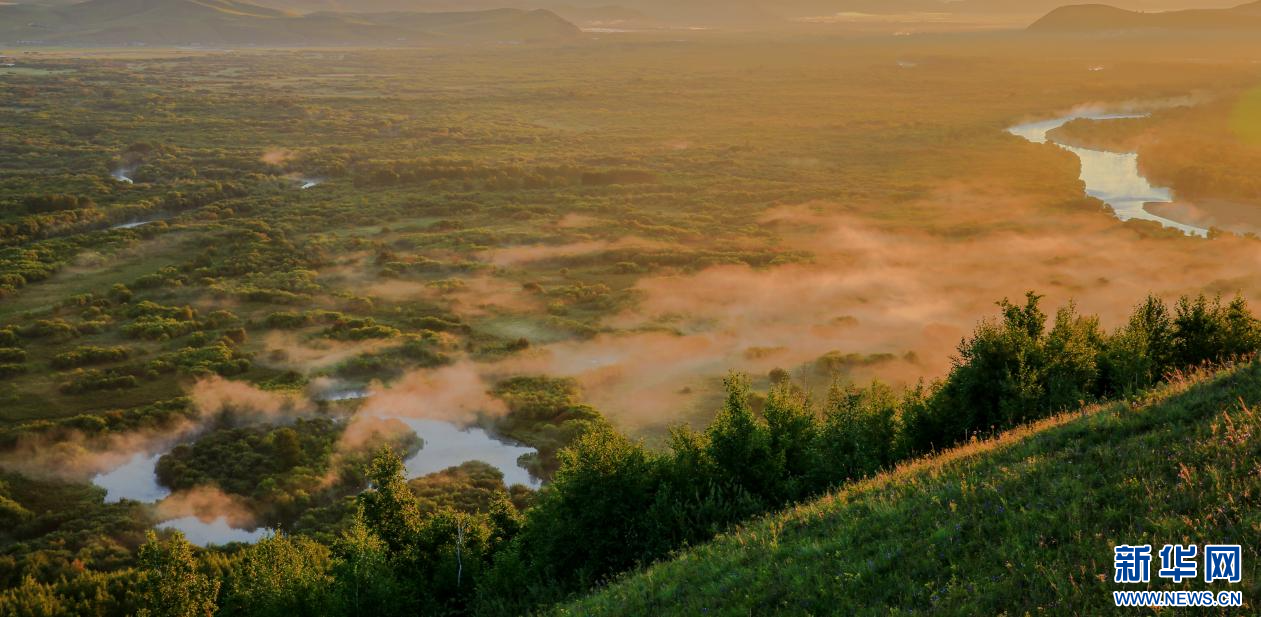 雾霭沉沉,氤氲笼罩着额尔古纳湿地。新华网发(耿金江摄)