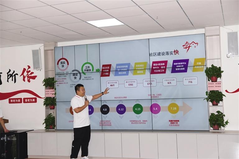 奔腾社区工作人员介绍社区整体情况。